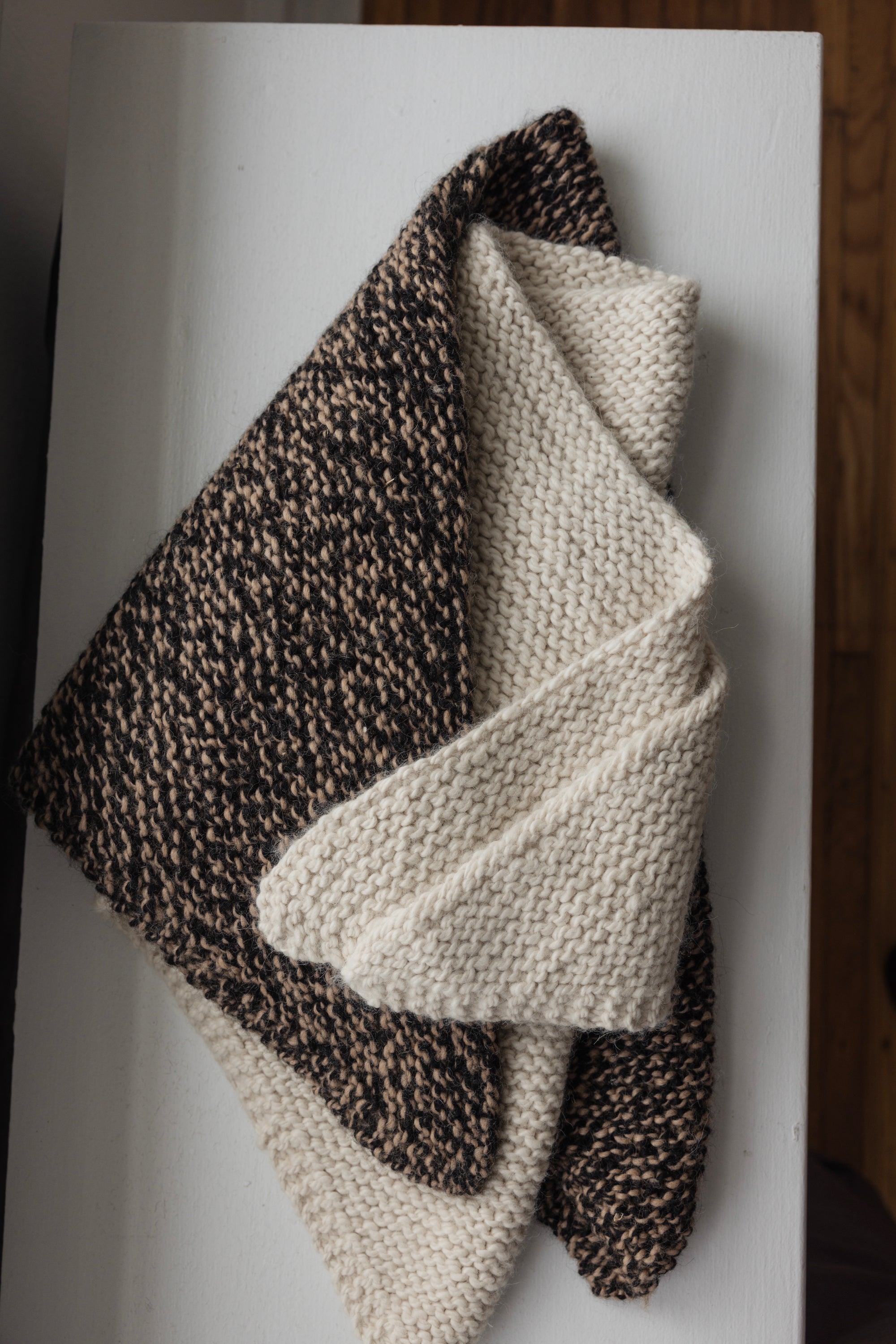 One kit features our Regenerative, Hanspun Peruvian Alpaca. The other uses our FoxFibre Coyote brown cotton and Rambouillet wool blend, fully made in the USA.