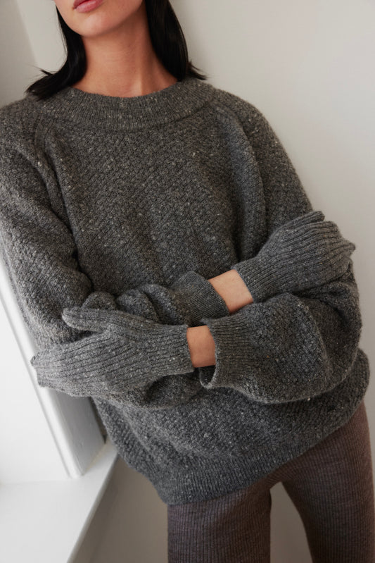 Layering Rib Crewneck : Heathered Brown