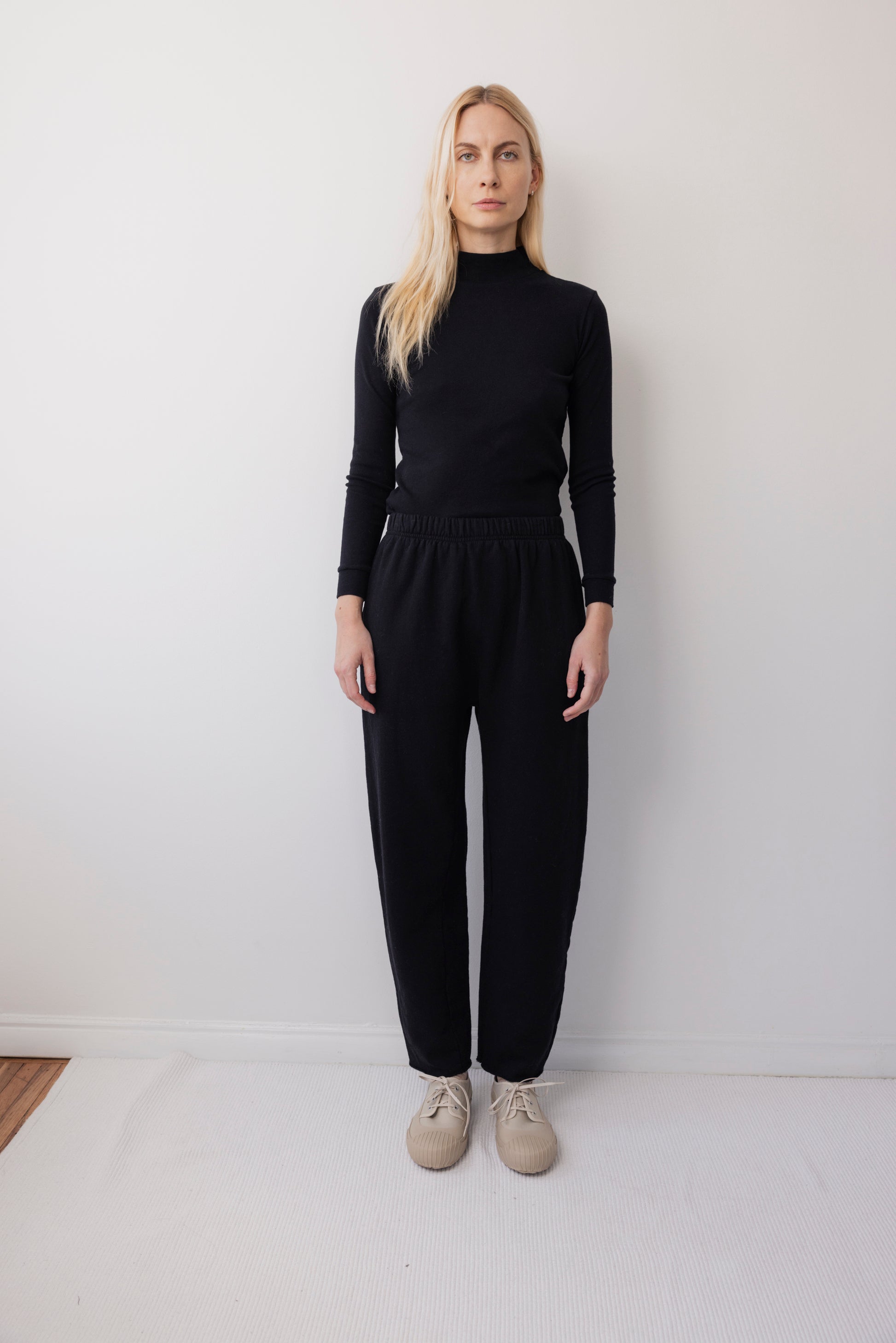 Slightly tapered and loose fitting pant with our signature inside leg gusset, side seam pockets, elastic waist and a raw edge hem. Done in our 100% USA grown and sewn organic cotton fleece fabric, ultra soft and fuzzy-inside.