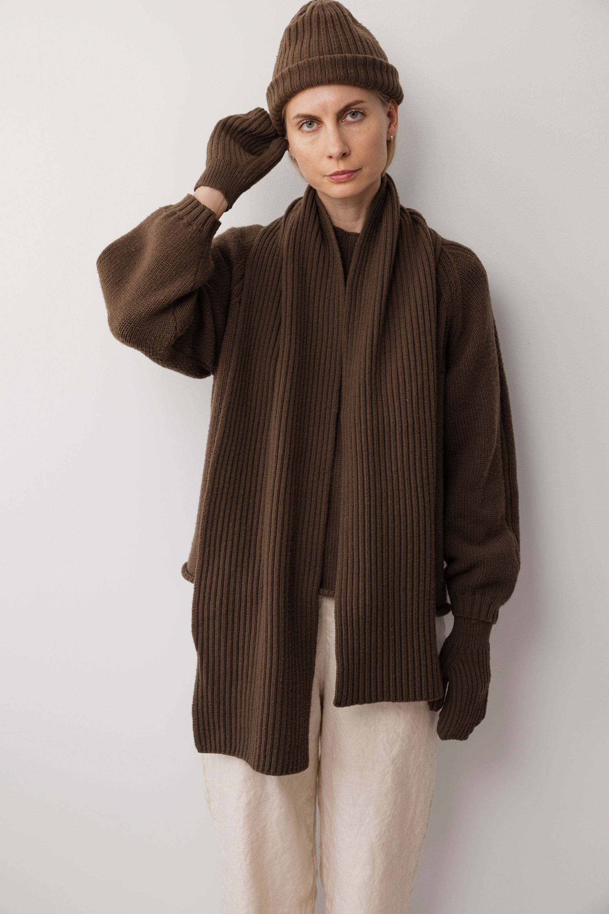Wide rib, slim fitting mitten with a rib cuff. This is knit with Shaniko wool which is domestic, traceable and raised on regenerative rangeland. It's RWS + Nativa Regen certified. Bark is dyed with low impact dyes.