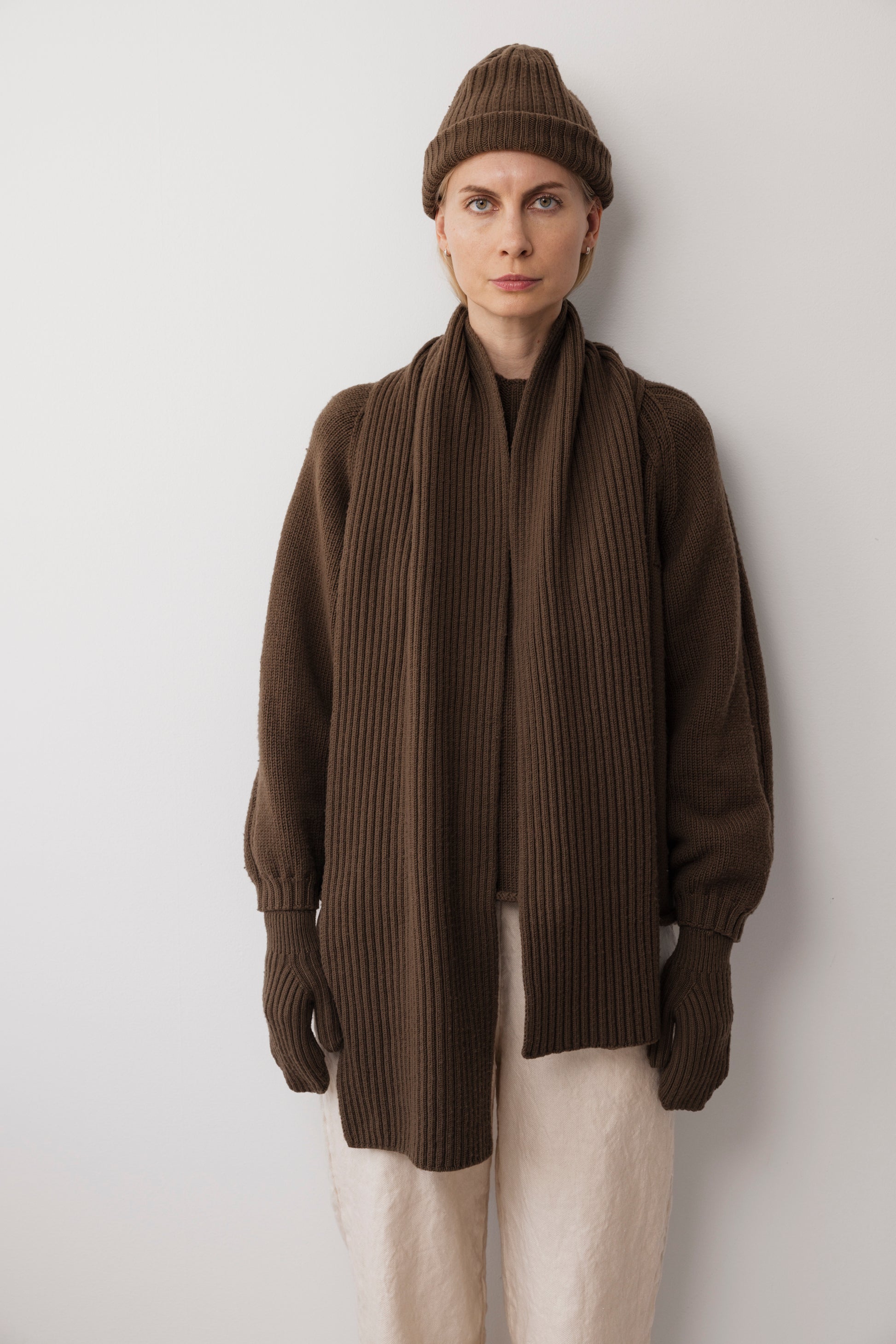 Double layer rib hat, a slimmer body than our Rib Hat. This is knit with Shaniko wool which is domestic, traceable and raised on regenerative rangeland. It's RWS + Nativa Regen certified. Bark is dyed with low impact dyes.